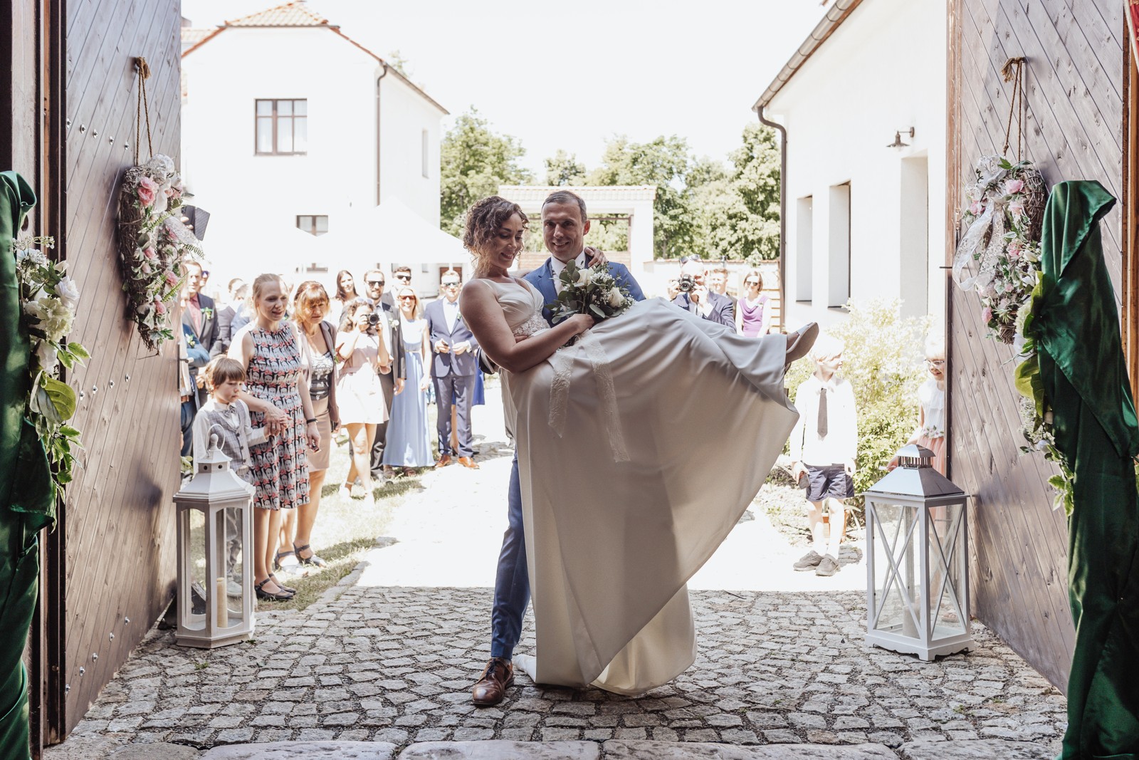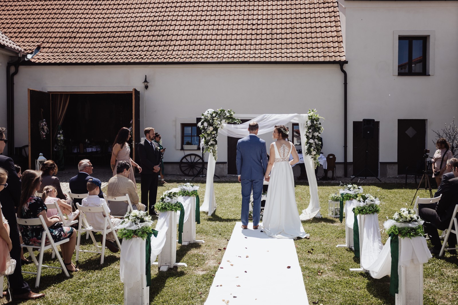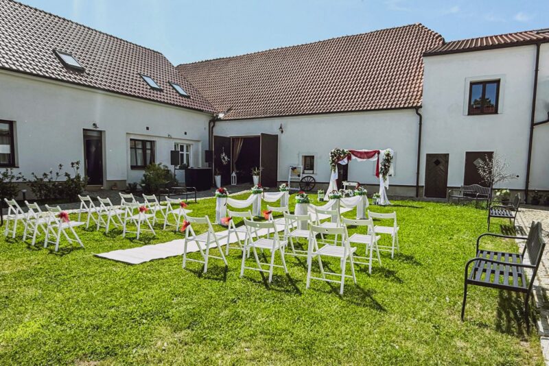 Hostivický dvůr je jedinečné místo, kde se romantika propojuje s historickou atmosférou a komfortem. Váš svatební den u nás může začít obřadem pod širým nebem v uzavřené zahradě, nebo ve stodole, která svou atmosférou dodá vašemu dni nezapomenutelný zážitek.